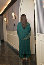 This crushed suit is all about quiet,sophestication,a statement outfit for any festive occasion. The tassels on the drape completes the outfit in the most fun way. This ensemble gives off a youthful yet regal feel making it suitable for all ages.