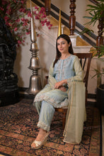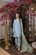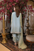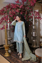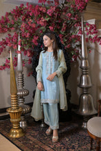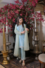 Dual shade tissue kurta & pant with silver sequin and katdana embroidery paired with organza dupatta.