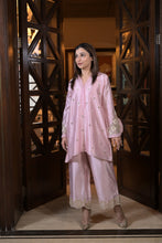 Breezy mirror and pearl kurta paired with flared pants creats a harmonious look.