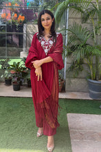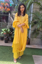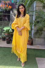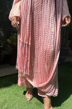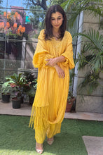 This crushed suit is all about quiet,sophistication,a statement outfit for any festive occasion. The tassels on the drape completes the outfit in the most fun way. This ensemble gives off a youthful yet regal feel making it suitable for all ages.