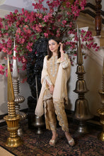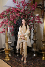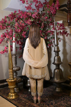 Tissue kurta & Dhoti with silver sequins and cutdana hand embroidery paired with organza dupatta.
