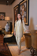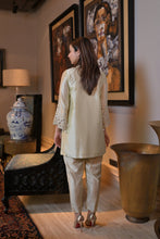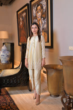 Striking short kurta with cutwork embroidery highlighted with sequins and cutdana is elevated by a dhoti style pant.