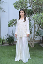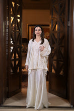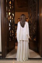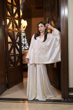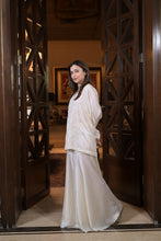Flared kaftan with garara braided with thread and hand beaded with sequins and cutdana.